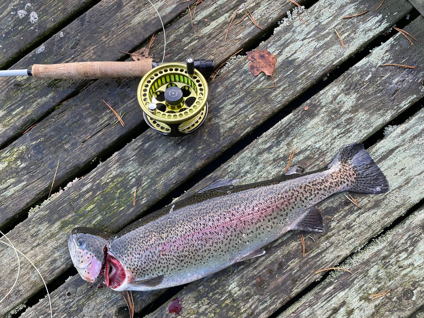 | |  Regenbogenforelle | 1 Fische | 1.10 kg 45 cm | | Fliegen (Enhand) Ädelfiskevatten Malingsbo-Kloten Rosa vatten (Abborrtjärn, Mellantjärn, Hedströmmen) Fly - Popper / Muddler | |