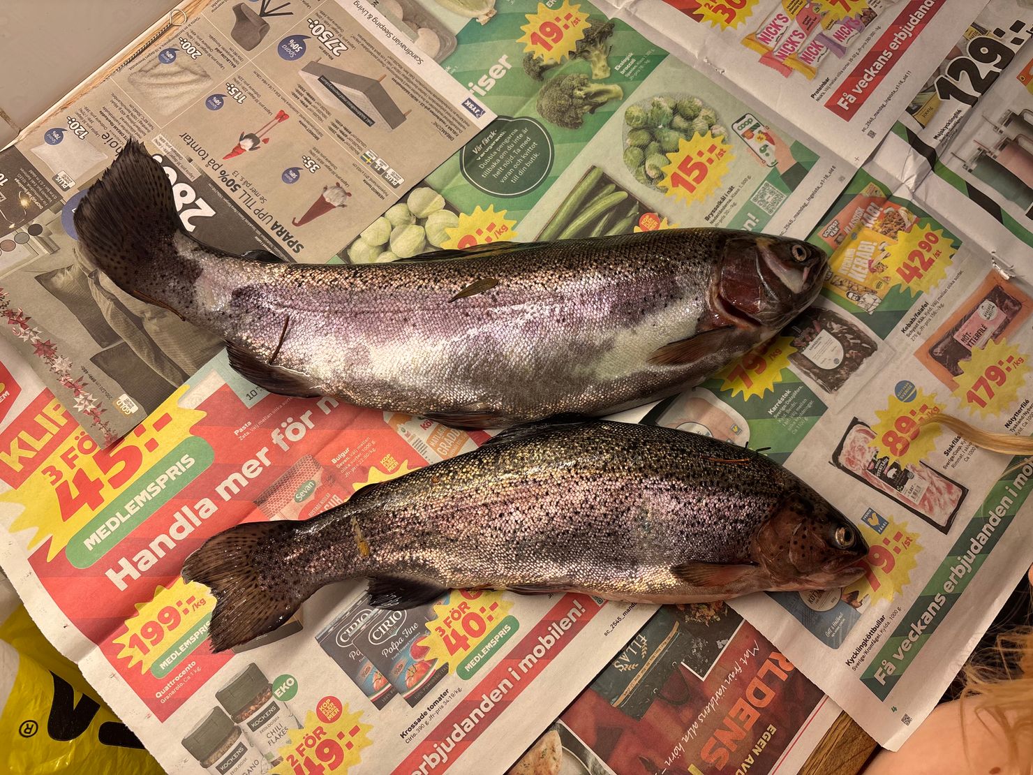 | 10‑31 |  Regenbogenforelle | 2 Fische | 1.30 kg | Dag Tapper | Fina fiskar i mycket bra kondition Angeln IF Metalls Sportfiskeområde Maske | |