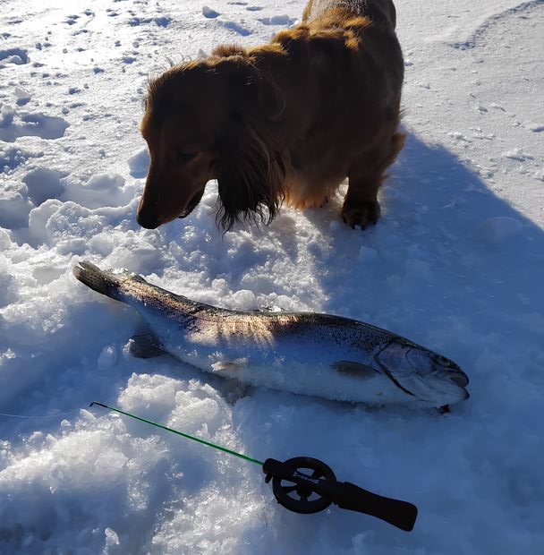 • 1 st Regnbåge  på 1.4 kg och 37 cm.  "Tom magsäck. Hela fenor."