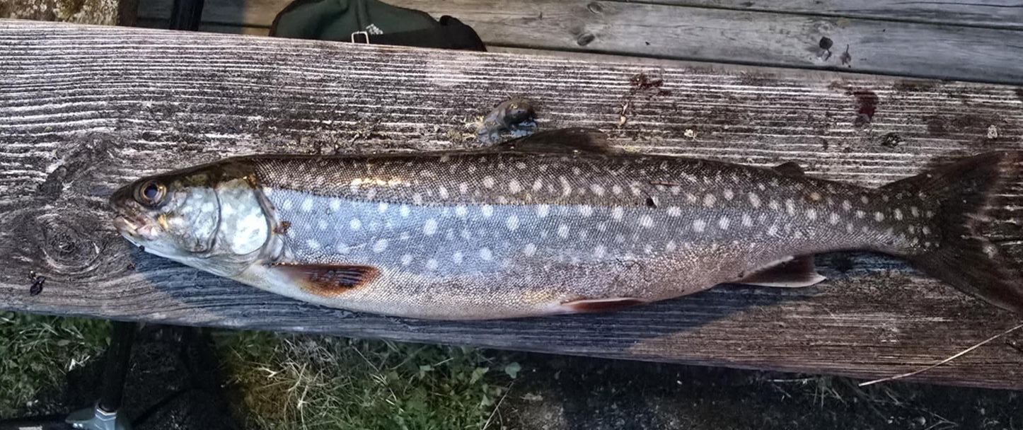 • 4 st Röding  på totalt 1.5 kg, Snittvikt 0.38 kg.  "Fick 1kanada röding på ca 1 kg tappa en stor Kanada på uppskattningvis 2.5 till 3kilo precis bredvid båten. Fick 1vad det ser ut som en hybrid mellan Canada o vanlig rödingpå1.550 gram den hade Canada form på huvudet samt rödingkropp. Sen 2 st r"