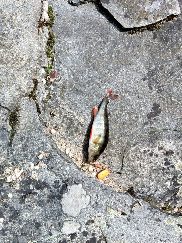 Beide Fische habe ich vom Ufer aus geangelt. Beide Fische habe ich wieder ins Gewässer zurückgesetzt (catch & release). Spinnen Åsnen Jig / Soft Bait (Schwanz / Grub) | |