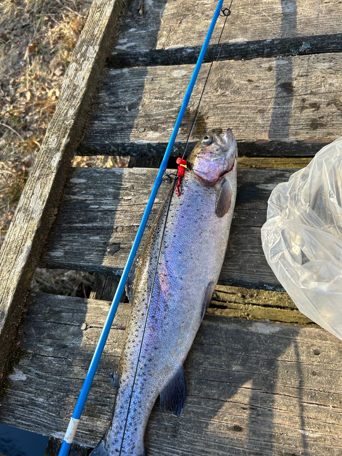 | 02‑10 |  Regenbogenforelle | 1 Fische | 1 kg | Mikael Axelsson |  Några vak på de ytor där isen inte lagt sig. Fliegen (Enhand) Lilla Hålsjön (Trollsjön) | |