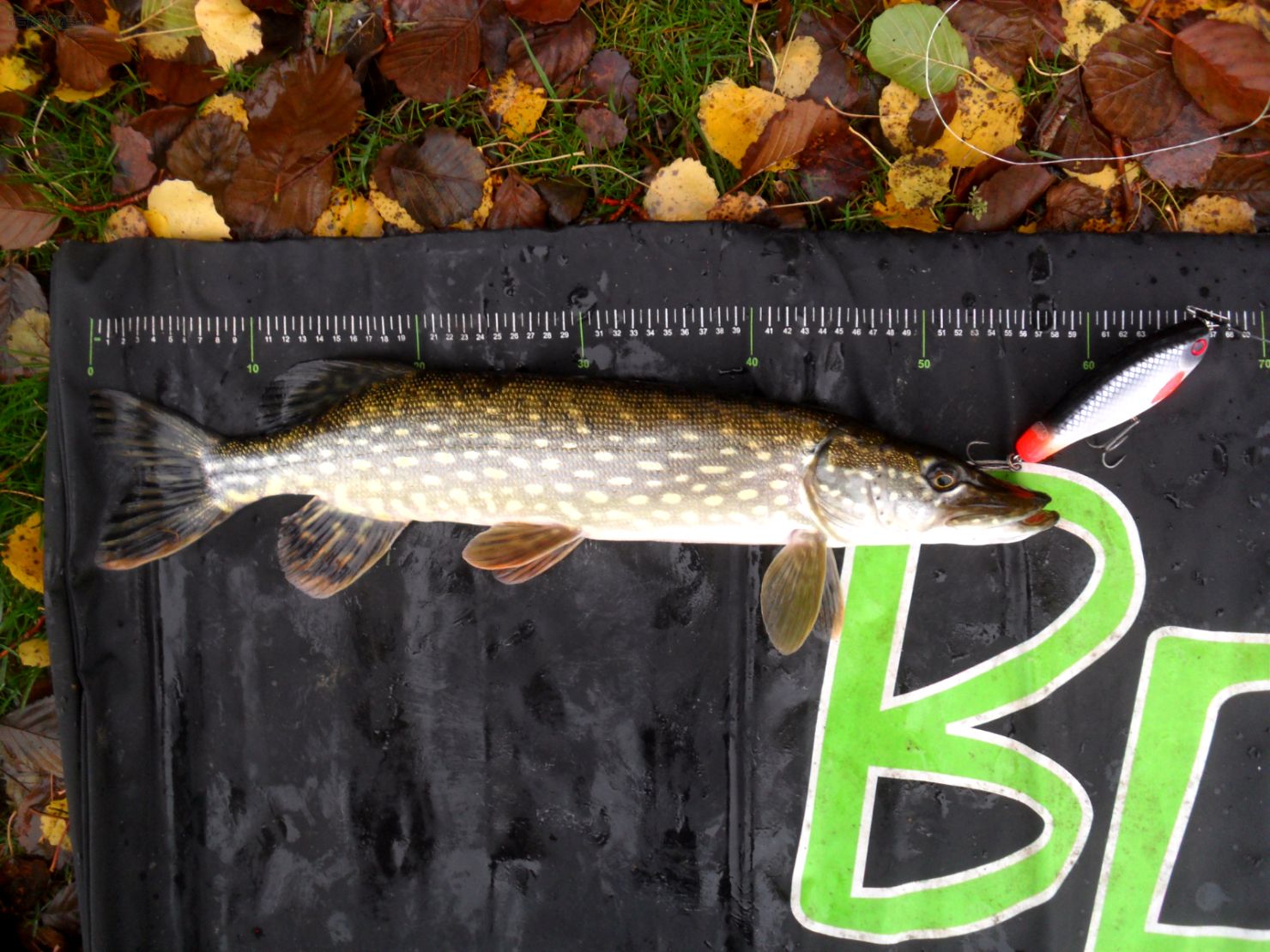 • 1 Fische Hecht  auf 2.2 kg.  "Ein 73 cm Hecht biss um 12.13 Uhr auf einen Scout Swimmer in der Farbe Hotfin Roach an. Zum Zeitpunkt des Bisses Wassertemperatur 13+, sonnig, teilweise bewölkt, Ostwind."   (  Nein!)