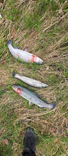 • 3 Fische Regenbogenforelle  auf ingesamt 4.0 kg, Durchschnittsgewicht 1.33 kg.  (  Nein!)