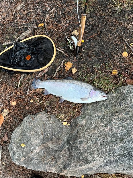 • 3 Fische Regenbogenforelle  auf ingesamt 2.0 kg, Durchschnittsgewicht 0.67 kg.  "1 hoch, 2 zurück"