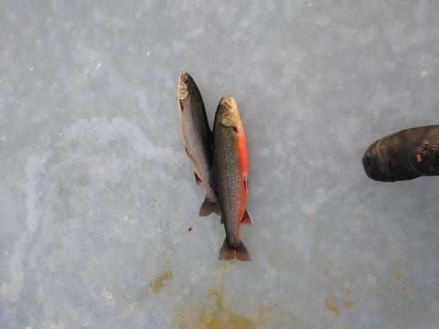 • 2 Fische Rotforelle  auf ingesamt 0.7 kg, Durchschnittsgewicht 0.35 kg.