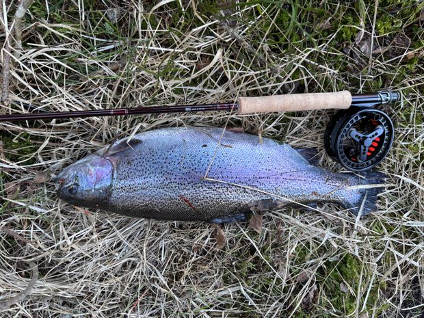 • 1 Fische Regenbogenforelle  auf 3.0 kg.  "Er hatte eine Fliege in den Kiemen und einen Köder im Hals. Er wog nicht viel, aber mindestens 3 kg. "