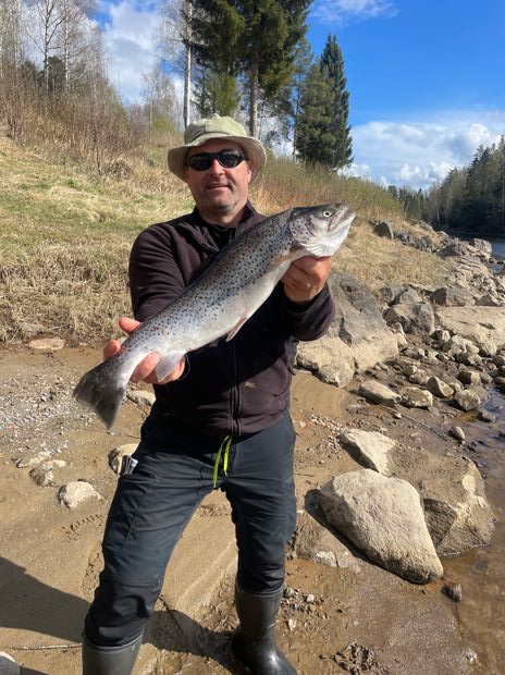 "Lost a trout about 4kg near shore. Spawning color. Lost a salmon about 3kg that jumped and got loose. "