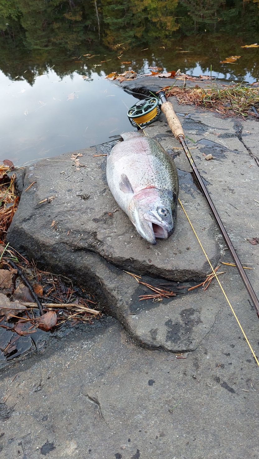 | 10‑02 |  Rainbow trout | 1 fish(es) | 1.50 kg | Thommy Nilsson |  Sporadisk vakande fisk Trögt fiske. Inget på torrfluga. 1 Regnbåge på Montana Streamer. Släppt tillbaka Regnbågen Fly (Enhand) Hunnebergs Flies - Streamers | |