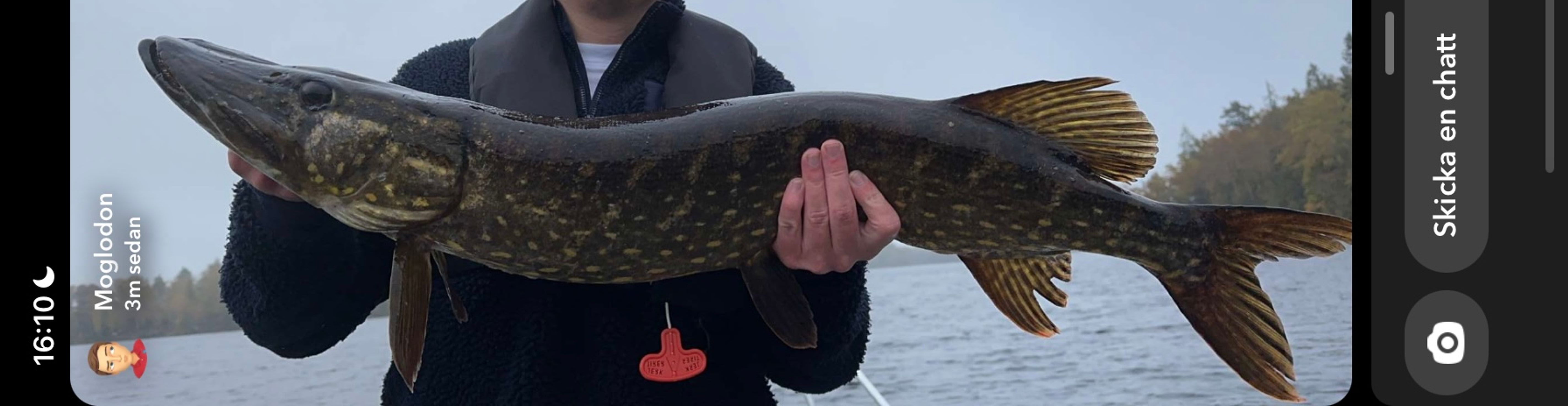 | 09‑20 |  Pike | 1 fish(es) | 1 gr | Martin Lundgren | Spinning Immeln Jig / Soft Bait (fishy) | |
