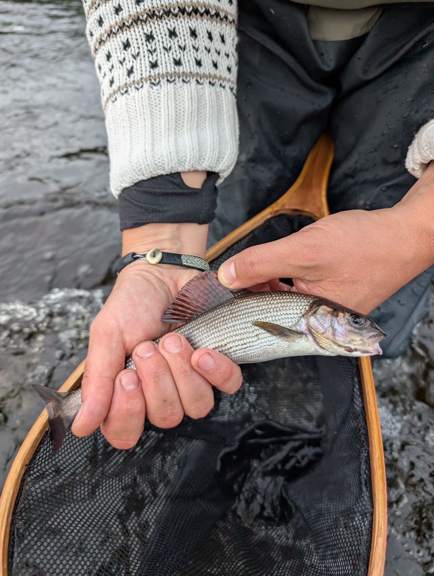 Fish species: 258 item Grayling, 46 item Brown Trout, 19 item Rainbow trout, 15 item Pike, 13 item Perch, 7 item Salmon and 3 item Whitefish.