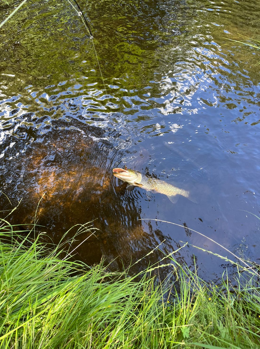Gött om mindre fisk i dom snabba partierna, såg en del större fisk som vakade på lugnflyten. Dagslända i naturfärgat fungerade bra.