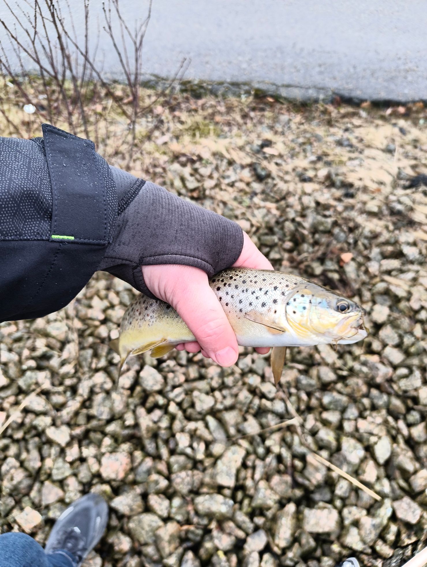 | 04‑02 |  Brown Trout | 1 fish(es) | 300 gr 25 cm | Patrik Stenmark |  Mulet, Duggregn, +8 grader. Fisken verkar vara på hugget. Ca 25cm och ca 300g, glömt måttband :) tog på Kallsjödraget vid Södra hamnen mittemot Riverside. Satte självklart tillbaka fisken. Tappade även 2 st öringar. Spinning Nedre Bäveån SPOON | |