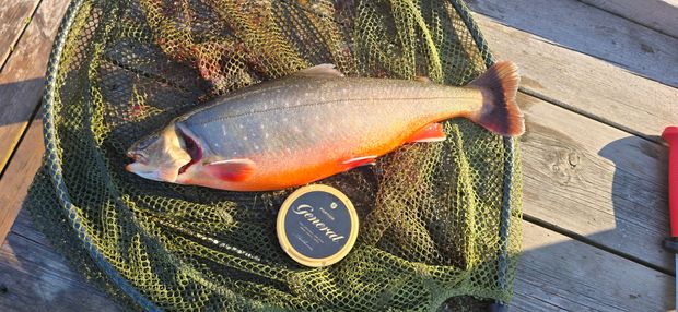 • 1 kpl Taimen  kokonaispaino 0.9 kg ja 1 cm.  "Tiikerilohi "   (  Vapautettu!)