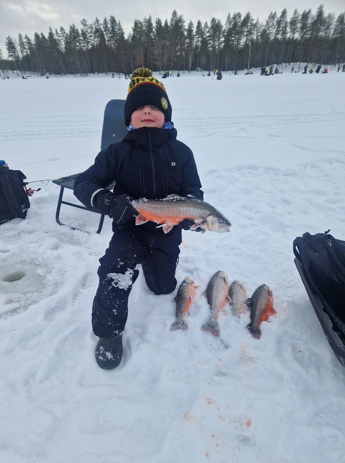 | 02‑21 |  Nieriä | 6 kpl | 5 kg | Jakob Åberg |  Riktigt fina rödingar idag på premiären, två fulla kort blev det! jää Jädraås FVF toukka | |