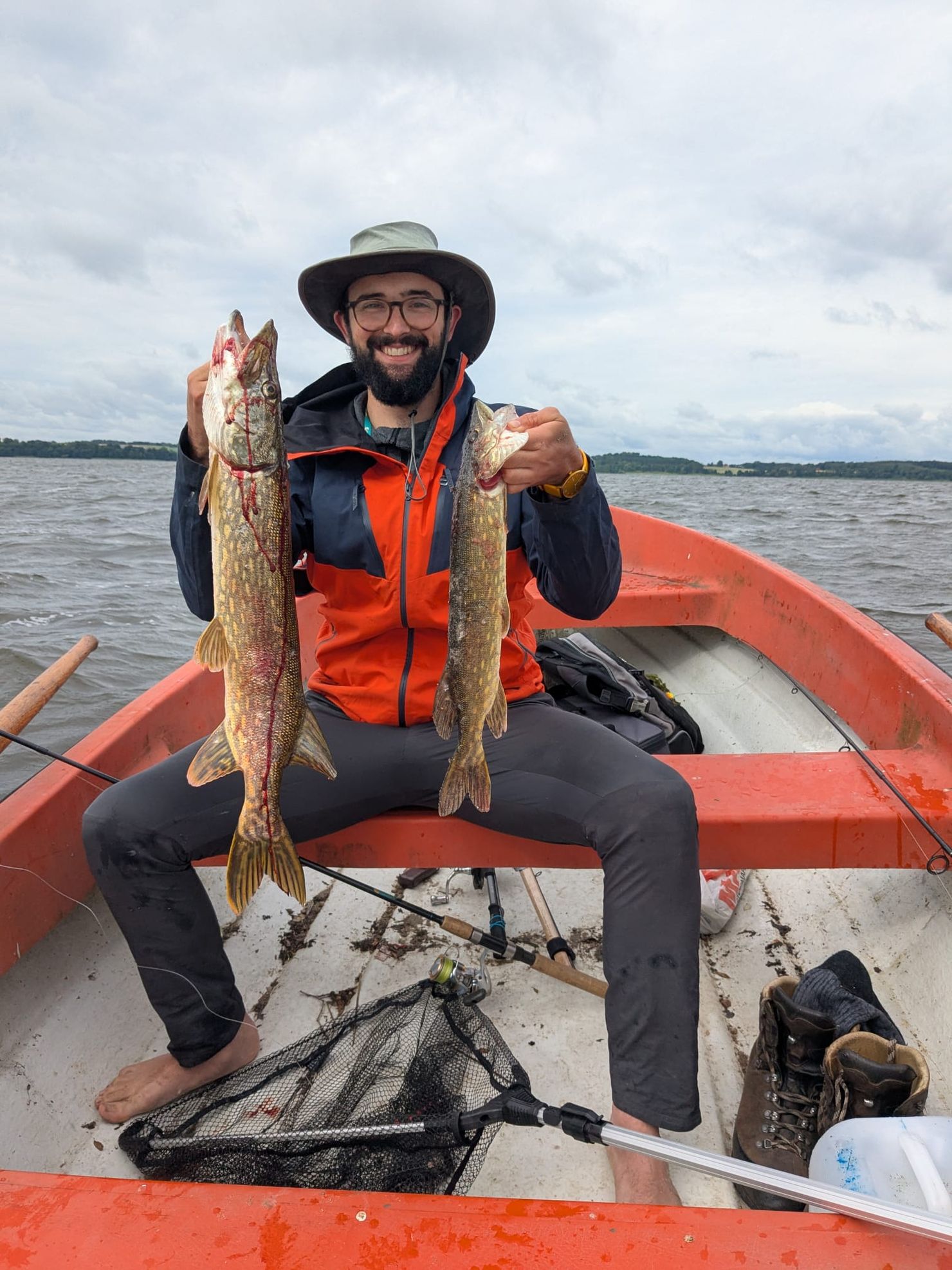2 små gäddor som krokades av i vattnet och inte upptagna i båten. kehruu Ringsjön Kehruu välillä (6–12 gr) | |