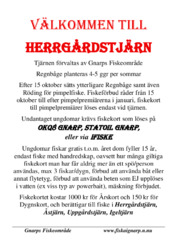 Från 15 oktober fram till premiärfiske lördag och söndag 10-11 januari 2026 råder fiskeförbud i Herrgårdstjärn. Vid premiären löses fiskekort endast på plats vid tjärnen, tid för fiske är 08:00-15:00 båda dagarna, 200 kr/3 fiskar. Efter söndag 11:e kl 15:00 gäller ordinarie fiskekort.