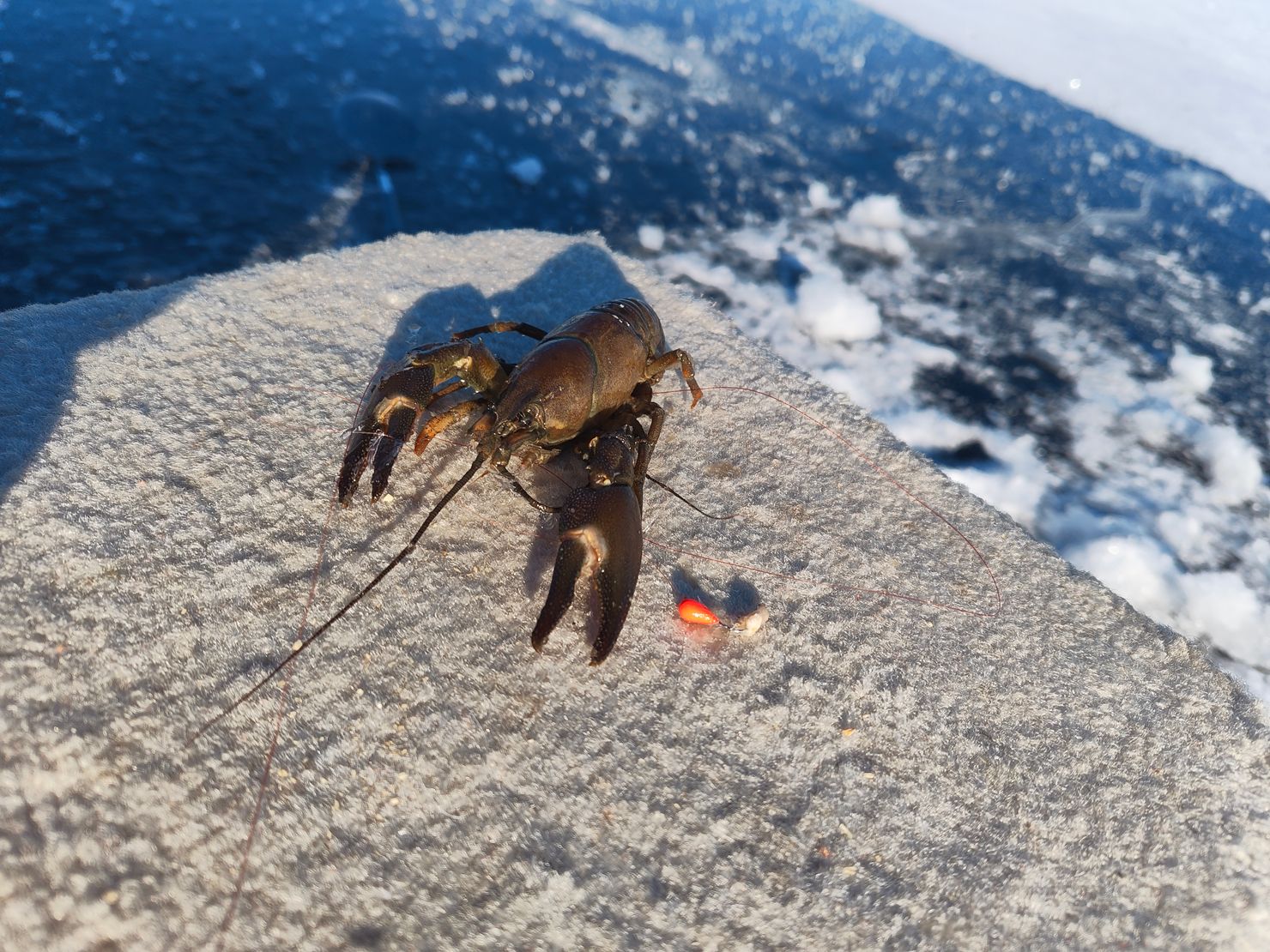 | 02‑14 |  Abborre | 25 st | 1.90 kg | Magnus Nordeke |  Väldigt varierande istjocklek. Tjock snö=tunn(5-8cm) is under. Ingen snö=tjock is (20-25cm). Några abborrar blev middag. Fanns stor abborre men de ville inte komma upp. Kom upp en kräfta som åter utsattes. En mört fångades också. Mormyska Anten Maggot | |