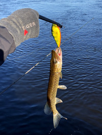 Inte många gösar jag får, så det är extra roligt när jag får en. Spinnfiske Dalälven (Untra kraftverk till Älvkarleby) Wobbler liten (0-10 cm) | |