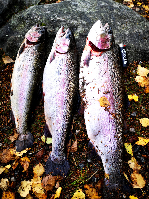 | 04‑16 |  Regnbåge | 3 st | 5.80 kg | Gunnar Nilsson | Något as hade tömt en massa cigarett fimpar vid första parkeringen . sådana skall portas på livstid märkligt att fiskare måste svina ner överallt när de fiskar burkar fimpar snuspåsar plastpåsar mm. Sen heter det att nä vi fiskare slänger inget skräp i naturen vilket är en ren lögn. Spinnfiske Ränningen med bifl.Ljusnan Skeddrag | |
