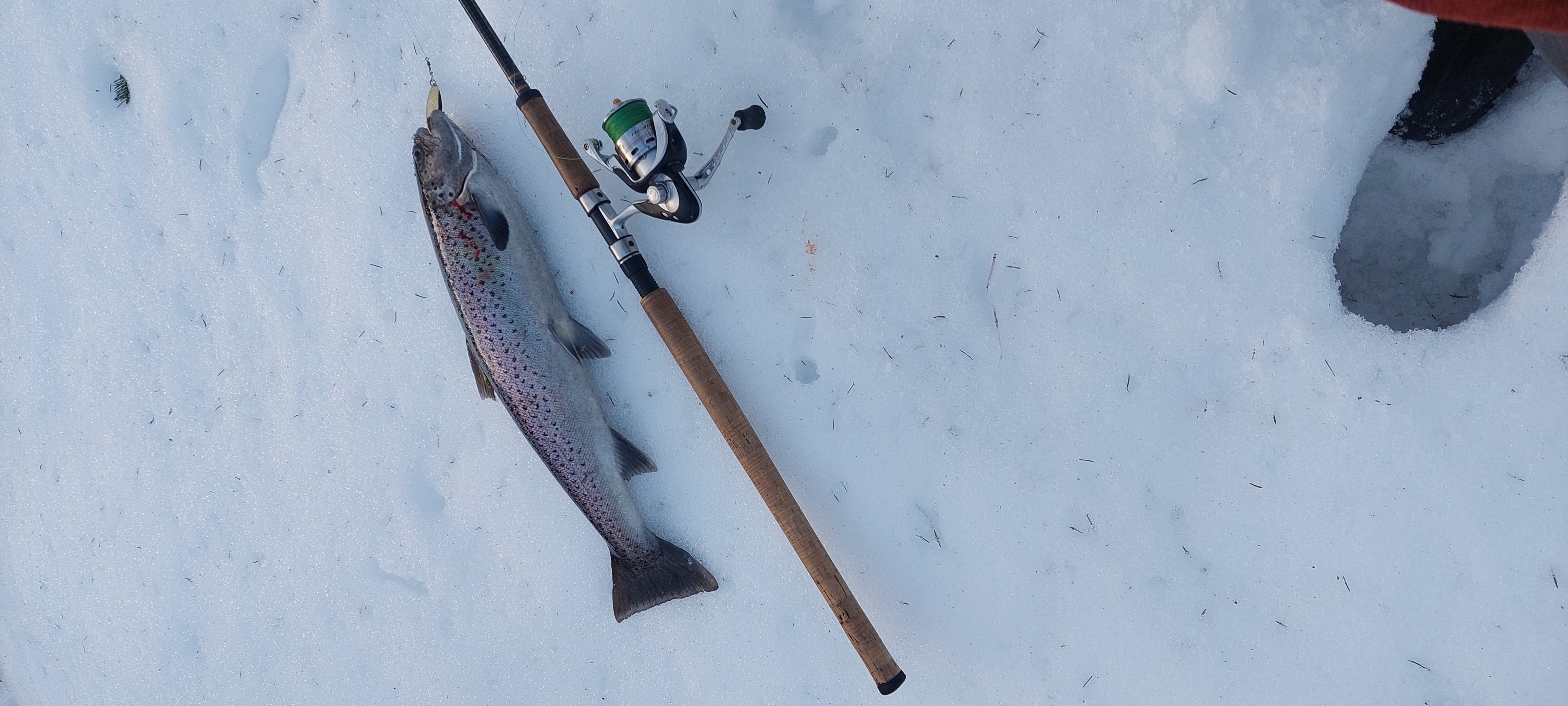 | 03‑09 |  Rainbow trout | 1 fish(es) | 400 gr 40 cm | Lima FVOF | Stig Larsson | Dåligt napp i dag Jig Lima FVOF maggot | |